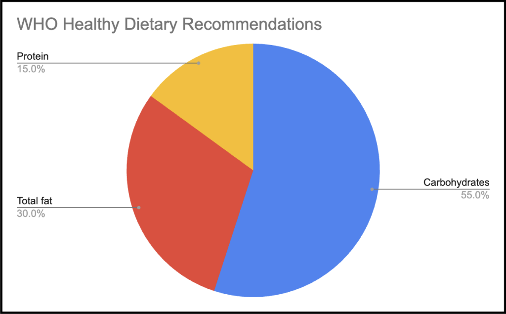 The World Health Organisation (WHO) aims to provide guidelines to support good health and monitor health trends. WHO provides evidence based recommendations that are applicable worldwide taking into account availability, food culture and economy (Saluja et al, 2022). Table 2 shows the WHO recommendations for individuals aged 10 and over based on a daily intake of 2,000 calories.